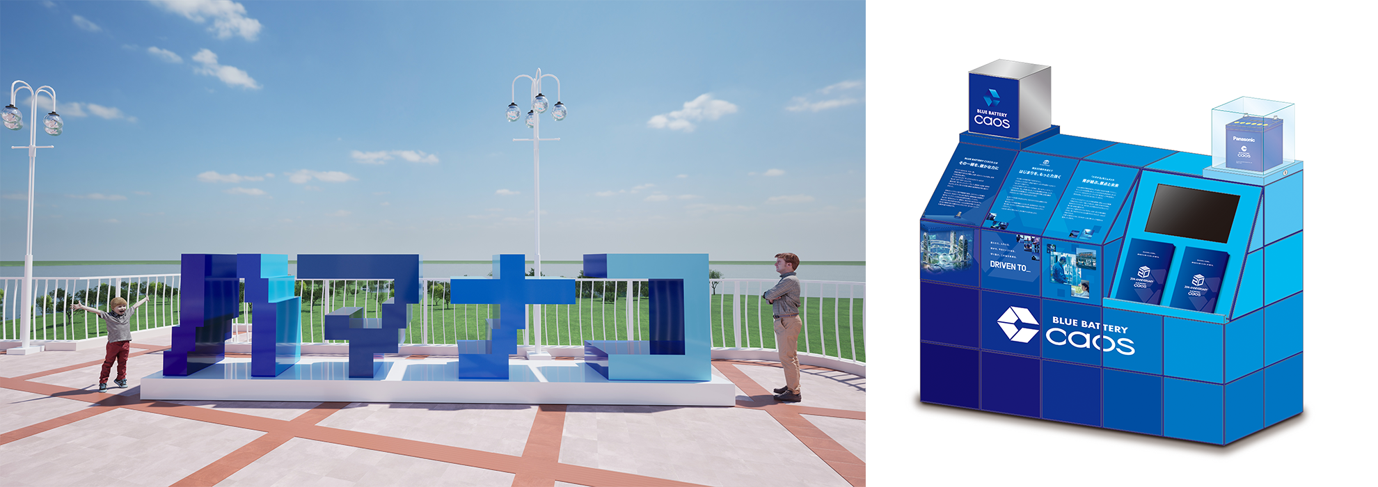 BLUE BATTERY caos誕生20周年を記念し、その原点である浜名湖、EXPASA浜名湖に「ハマナコ」モニュメントを設置します。